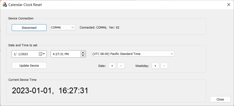 To set the initial time (or update when the batteries were replaced), I created a simple MS Windows app. Using a USB cable, my device can be connected to a computer. The app will get system time and send it to the microprocessor.